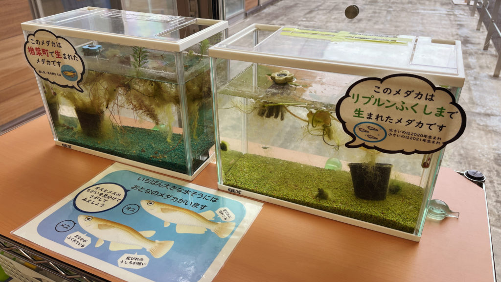 次世代ツアーの2日目はまず特定廃棄物埋立情報館であるリプルンふくしまに行きました。リプルンふくしまは放射性物質に汚染されたごみの埋立処分についてわかりやすく学べる体験型情報館で、放射線の検量計を用いての測定やこの施設で生まれたメダカが展示されていたりしました。